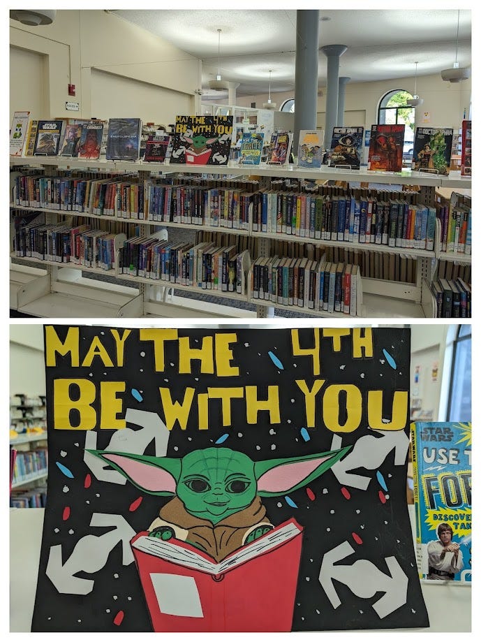 And then there is using other resources you have. This sign was made by a library worker who had some down time and loves paper crafting. She was happy to have something she enjoyed that would be helpful to the branch and I was free to grab the books and get some other things done on a busy day.